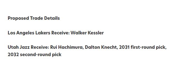 爵士是狮子大开口,但湖人绝对有机会得到凯斯勒。对此,专栏记者古普塔撰文,给出一套交易方案,具体为:湖人送出八村塁+克内克特+31年首轮签+32年次轮签,得到凯斯勒。用古普塔话说,全联盟能拿出这个级别的报价去求购一名蓝领中锋的球队,恐怕只有刚需的湖人,而且随着时间推移,凯斯勒的交易行情只会越来越低,就像是库明加一样。专栏记者瓦里尔报道,佩林卡虽然最近几年一直不愿意放弃未来选秀权,但在新赛季发布会上明确表示,如果一笔交易能让湖人保持卓越,提高总冠军概率,那我们必须这么做!