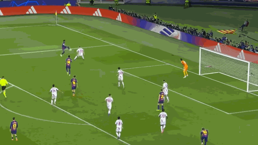 比如,费尔明前两个进球就是通过这样的情况制造出来的。在队友抢截后靠高压逼抢的方式,让对方失误及送礼的基础上,亚马尔的快速突破、给巴萨制造了射门的契机。闪转腾挪之间,费尔明就已经拿到了射门的角度,虽然对方有5人封堵,不过这个回归的小将还是完成出色破门成就。